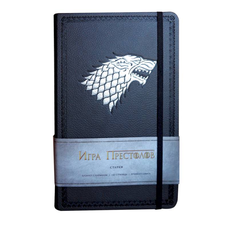 Серия «Блокнот. Игра престолов» - это уникальные записные книжки, каждая из которых посвящена одному из Великих домов Вестероса. Блокноты великолепно оформлены и содержат исчерпывающую информацию по каждому из семейств: Старкам, Ланнистерам, Баратеонам и Таргариенам. Для переплета использован прочный термоматериал, гарантирующий долговечность вашей записной книжки, кармашки и резинка, скрепленная с блоком, позволят вам хранить отдельные листки без опасения их потерять.