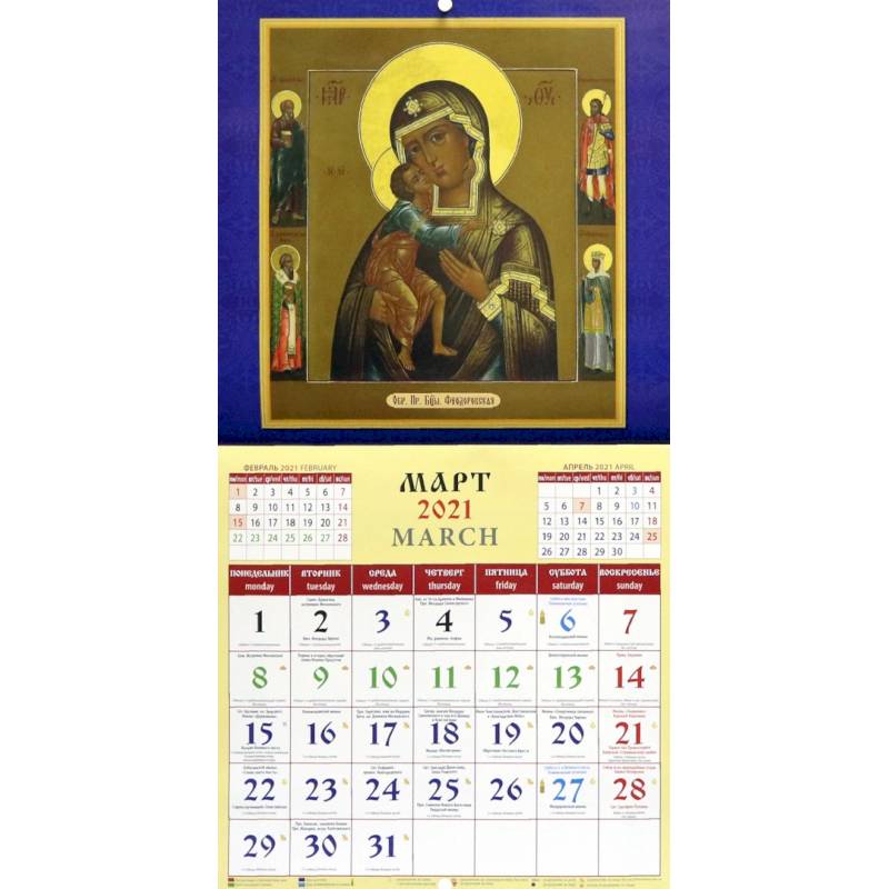 Православный календарь на 2021 год.