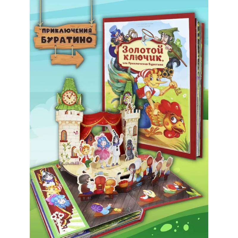 Знаменитая и всеми любимая повесть-сказка Алексея Толстого о приключениях деревянной куклы Буратино и его друзей — Пьеро, Мальвины, Артемона. Отправляйтесь на поиски золотого ключика и помогите папе Карло открыть заветную дверь за нарисованным очагом! Полный текст произведения и огромные POP-UP конструкции на каждом развороте позволят окунуться в атмосферу приключений. Новая подарочная книги из серии «Золотая коллекция сказок» от торговой марки Malamalama — настоящее сокровище любой книжной коллекции!