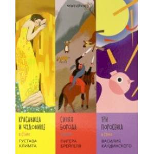 В альбом входят сказки – «Красавица и чудовище», выполненная в манере Густава Климта, «Синяя борода» в иллюстрациях а-ля Питер Брейгель и «Три поросенка», в иллюстрациях к которым творчески переработаны мотивы и орнаменты Василия Кандинского.