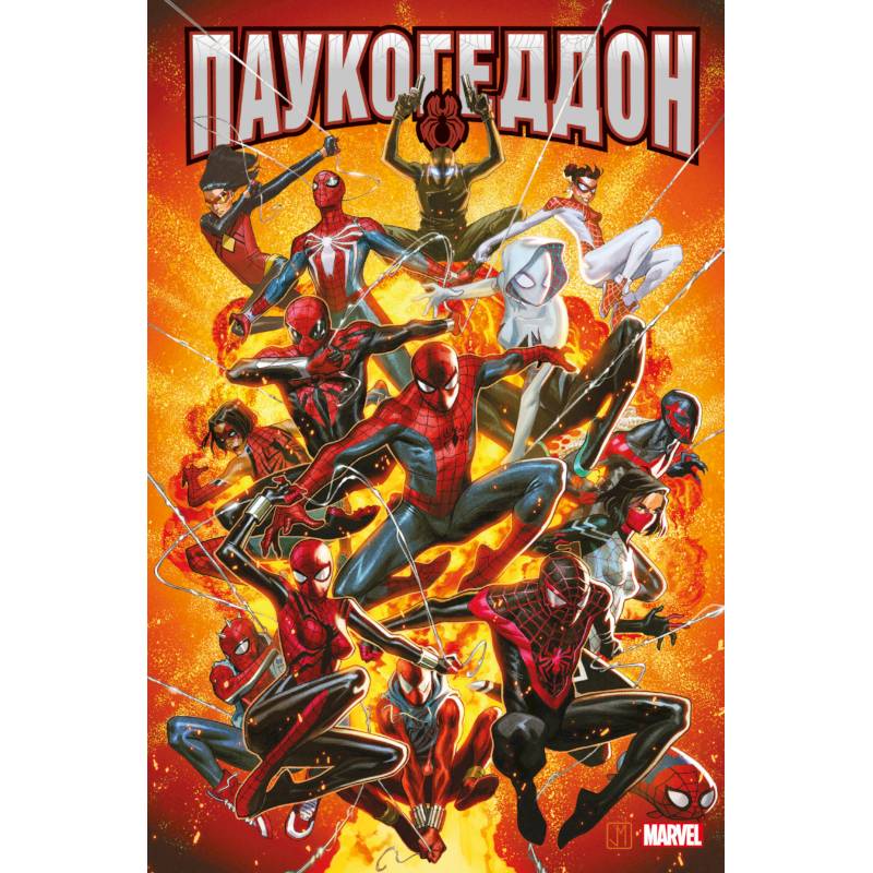 Наследники сбежали из заключения на радиоактивной планете и возобновили свой разрушительный поход против паучьих тотемов! Людям-паукам вновь придётся объединиться, чтобы дать отпор злодеям – но в этот раз их шансы на победу невероятно малы... ибо грядёт уничтожение Паучьих миров! Встречайте: Человек-паук, Отто Октавиус, Гвен-паук, Майлз Моралес, Женщина-паук, Панк-паук, японский Человек-паук из телесериала, а также – впервые на страницах комиксов... Человек-паук из видеоигры Marvel's Spider-Man! Но и это не все звёзды сборника – в величайшей из битв Наследникам дадут отпор поразительный Свин-паук, ПА//к, тётушка Мэй с паучьими силами, а также шестирукий Норман Озборн и Человек-пауки – ужасающий рой пауков, сожравший Питера Паркера и перенявший его личность. Жутко? Ещё бы! Но крепитесь: это далеко не все сюрпризы, которые вам готовит 'Паукогеддон'!