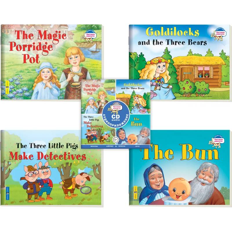 На диске записаны все четыре сказки, начитанные профессиональными дикторами в учебном темпе. Книги красочно иллюстрированы и дополнены интересными заданиями к тексту и словарём.