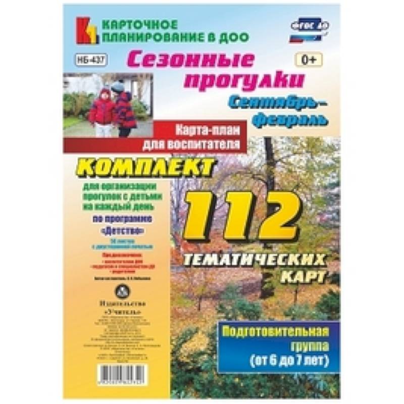 В комплекте из 112 тематических карт (56 листов с двусторонней печатью) представлена система прогулок, организуемых осенью и зимой в подготовительной группе, разработанная на основе положений ФГОС ДО, комплексной образовательной программы дошкольного образования 'Детство' Т.И. Бабаевой, А.Г. Гогоберидзе, О.В. Солнцевой и др. (М.: Детство-Пресс).