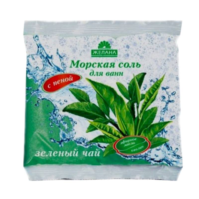 Морская соль для ванн с пеной. Эфирное масло зеленого чая.
