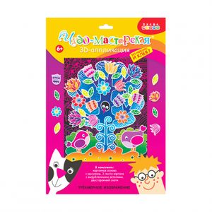 3D-аппликация - современный и очень увлекательный вид творчества. Данный набор позволит создать необыкновенно выразительную 3D-картину. Яркие и красочные детали изображения, выполненные из плотного картона, выступают над основой, создавая причудливый и сказочный мир. Этот удивительный 3D-эффект возникает благодаря использованию объёмного двустороннего скотча. Готовое изделие смотрится необыкновенно эффектно.